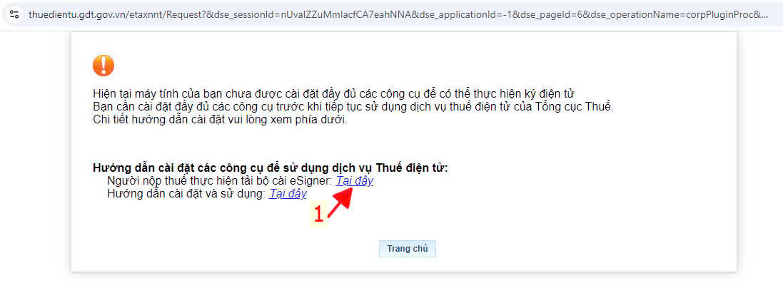 Bước 1: Bấm chuột vào chữ Tại đây như hình trên để tải công cụ ký số.